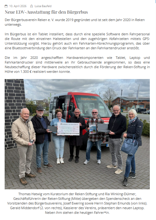 Quelle: Homepage der Reken Stiftung vom 10. April 2026